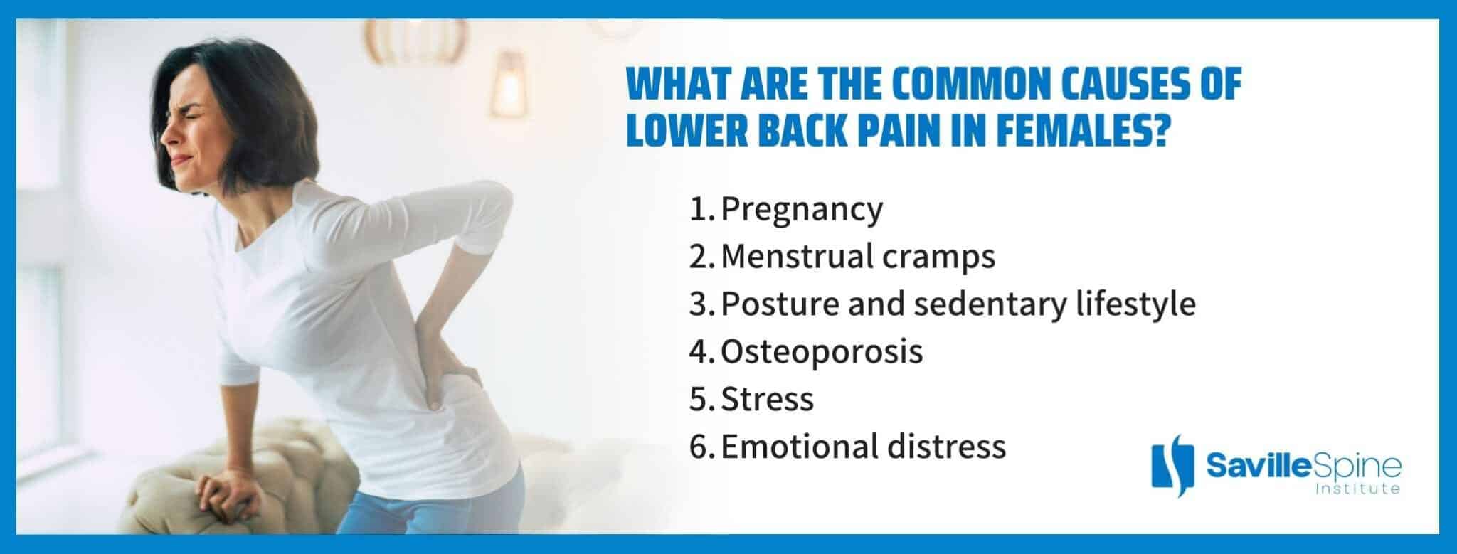 One of the most common causes of lower back pain in females is pregnancy. As the baby grows, the body undergoes many changes, including an increase in weight and a change in posture. These changes can strain the lower back, leading to pain. Additionally, hormonal changes during pregnancy can cause the ligaments in the pelvic area to relax, leading to increased pressure on the spine.