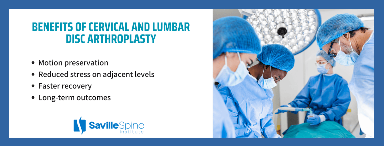 What are the benefits of cervical and lumbar disc arthroplasty?
