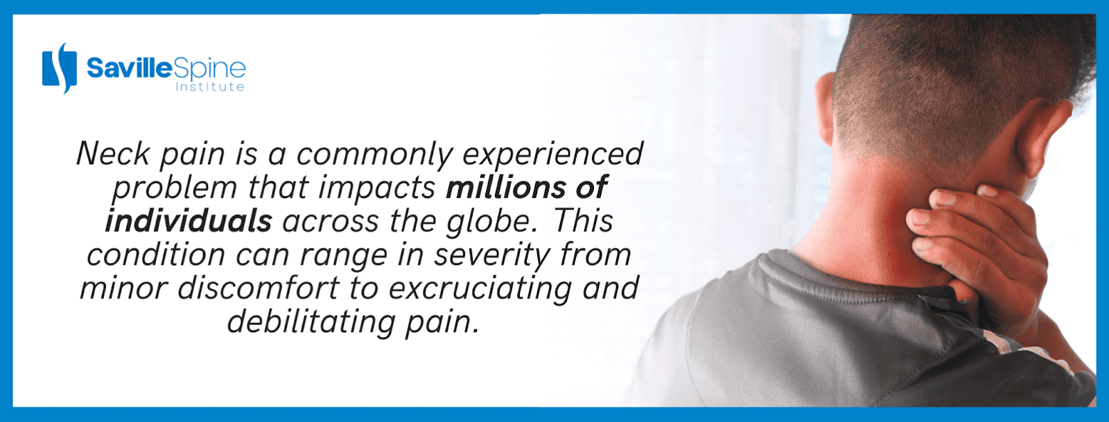 Stop suffering from neck pain and take control of your health with these seven expert tips from Saville Spine Institute. Say goodbye to discomfort and hello to a pain-free life.